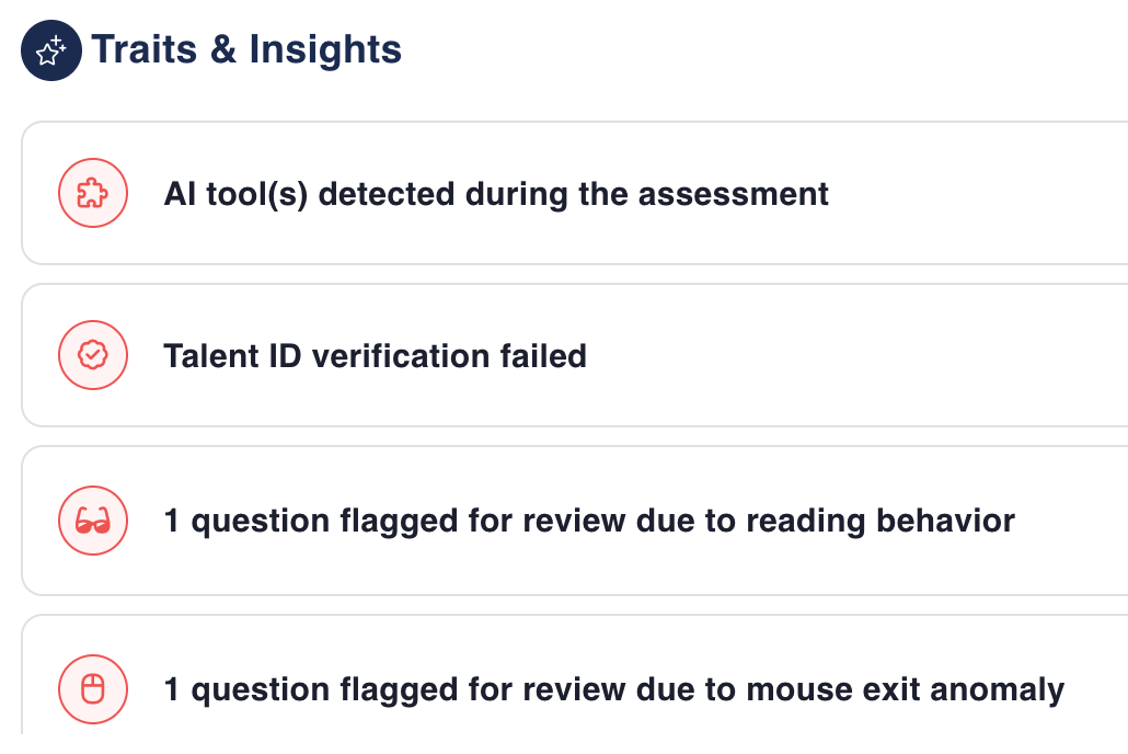 Feenyx flags suspicious behavior during assessments and live interviews automatically.